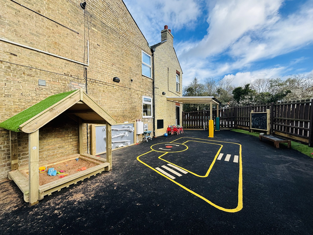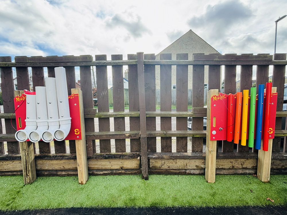 ESP PLAY designed a bespoke roadway for the children to scooter and ride their bikes around and to allow for daily physical activities opportunities. This playground design also featured a magnetic water wall, an open ended play hut including a bespoke sand pit, two musical panels and a large chalk board for mark making.