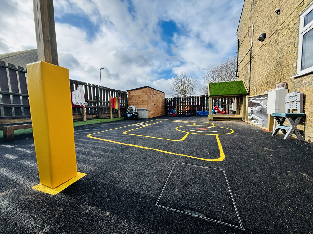 The nursery already had a totally blank canvas with the current surface being a black Wetpour surface.