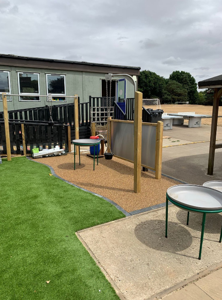 As the lead school in the Learning Partnership Trust, Hatfield Heath is situated in a leafy setting on the Essex, Hertfordshire border. The site has an abundance of green space. With grass covering 70% of the EYFS provision, the opportunity for outdoor learning was limited for large periods of the year. The Deputy Headteacher, Michelle Collier contacted ESP to help find a solution that met the needs of the children, fit within the green setting, and worked with a limited budget