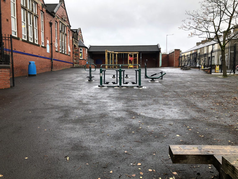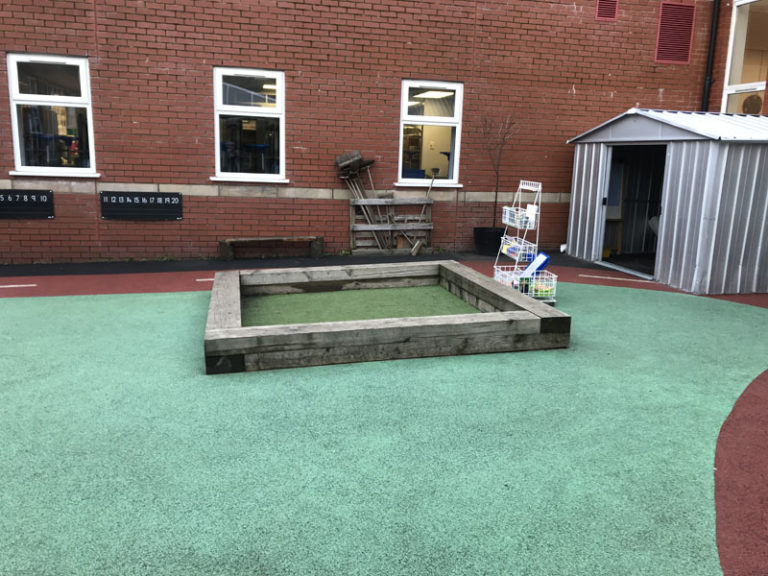 The EYFS Lead had put together an ideas board which gave us a clear vision of what the school wanted and it really helped us to turn their initial dream into a reality. Surfacing was the focus of the project because the current surface was uneven with drainage issues, but they also wanted to add some equipment too whilst keeping the parent’s entrance clear. The area would be used by 90 children aged 4-5 years old and the school wanted the project completed during the Easter half term.