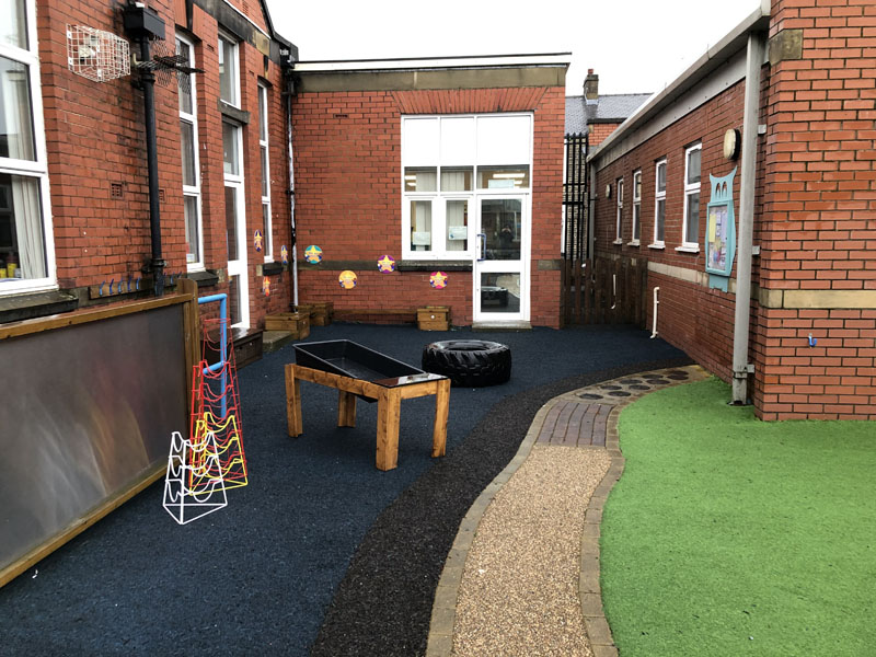 The EYFS Lead had put together an ideas board which gave us a clear vision of what the school wanted and it really helped us to turn their initial dream into a reality. Surfacing was the focus of the project because the current surface was uneven with drainage issues, but they also wanted to add some equipment too whilst keeping the parent’s entrance clear. The area would be used by 90 children aged 4-5 years old and the school wanted the project completed during the Easter half term.