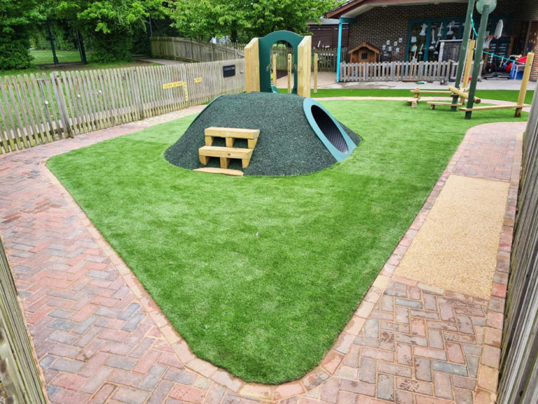 Herne C of E Infant School are an existing ESP customer completing three different projects. ESP were approached to enhance their existing Reception and Nursery provisions. The school wanted the areas to be natural looking, have lots of opportunity for physical development and to provide progressive play between the two age groups.