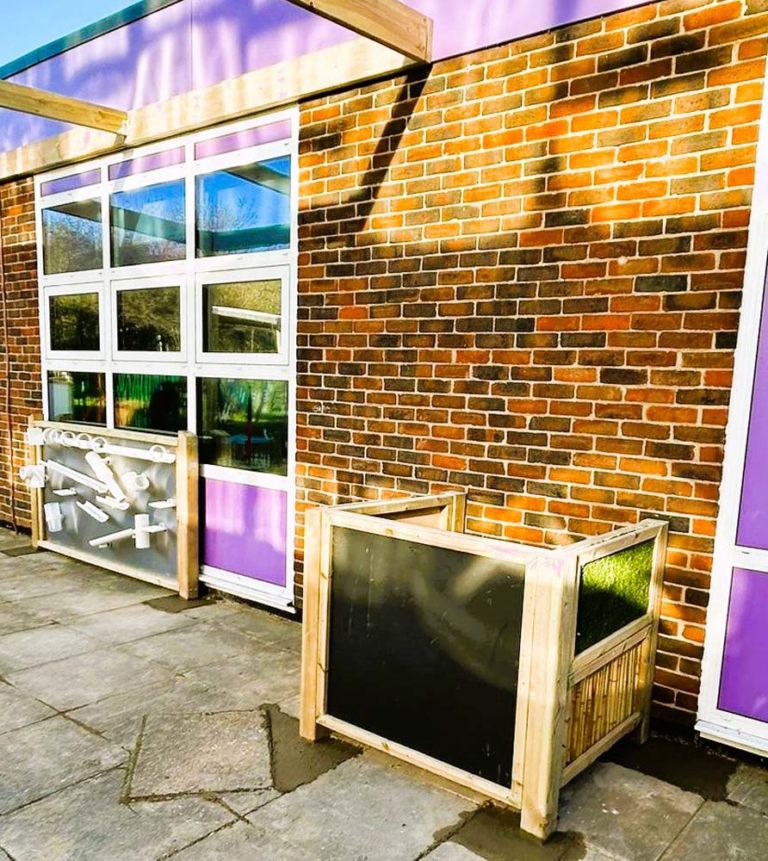 Donna the site manager contacted 3 companies as is best practice for schools. The existing space was a blank paved area. They wanted to create an area specifically for the children with autism. The requirements were: sensory elements, colour, canopy, some spinning equipment and a hide away space. Additionally, an existing vent protruded from the wall which they wanted to try to cover or hide.