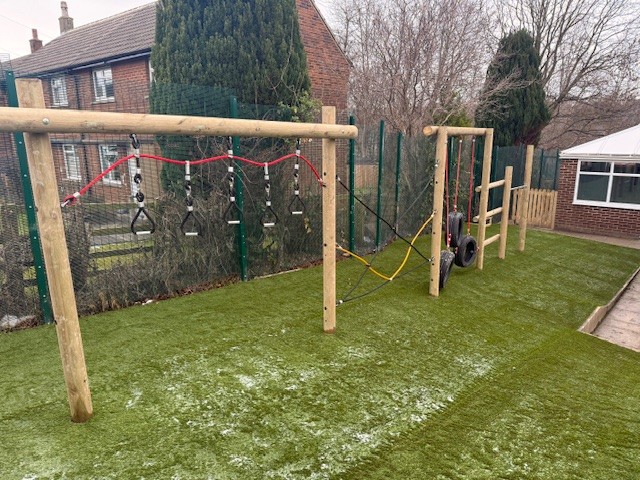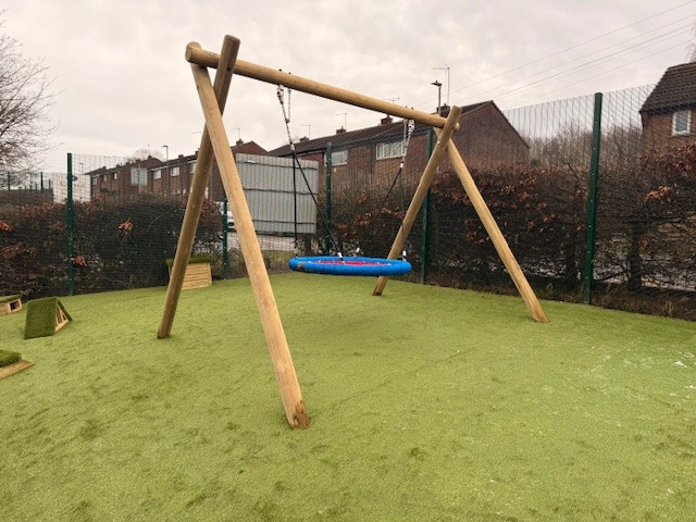 - Bespoke climbing unit and nest swing to support gross motor skills and sensory regulation.