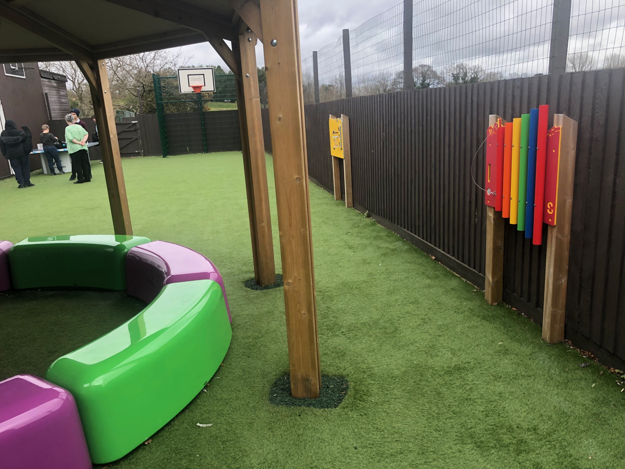 To provide an outlet for physical development and increased activity for children aged 7-18yrs. & to create a space for quiet reflection and shelter. The children required self-initiated structured activities due to their complex needs so it was agreed outdoor gym equipment and a dedicated zone for ball play would be best suited to the pupils needs.