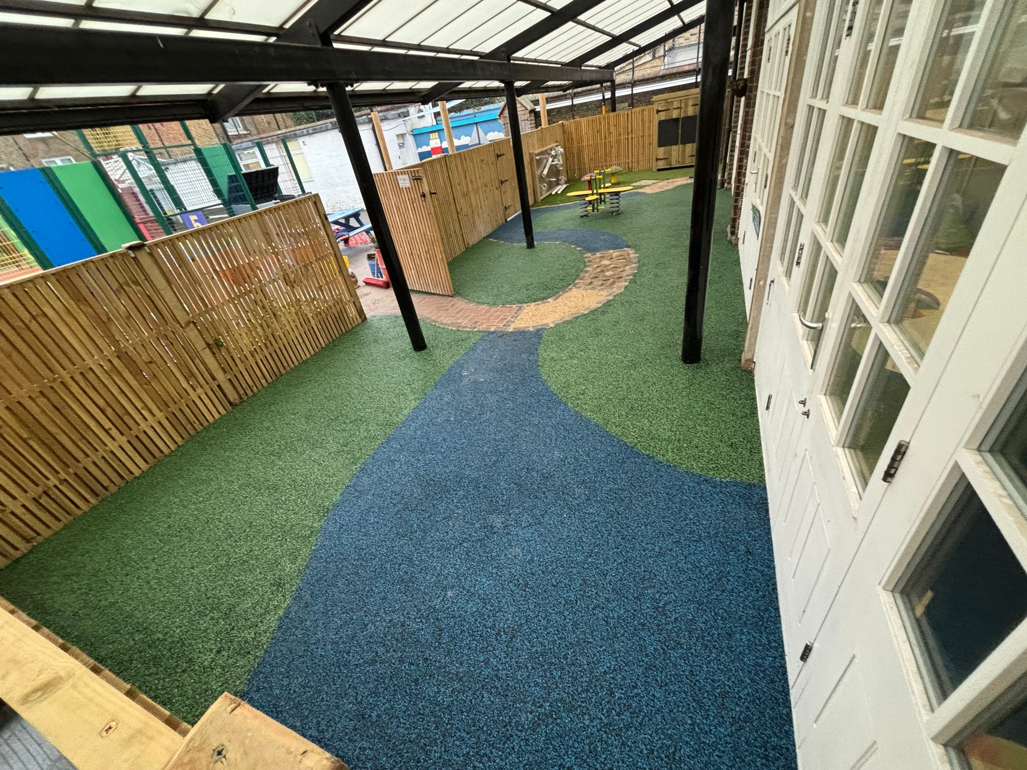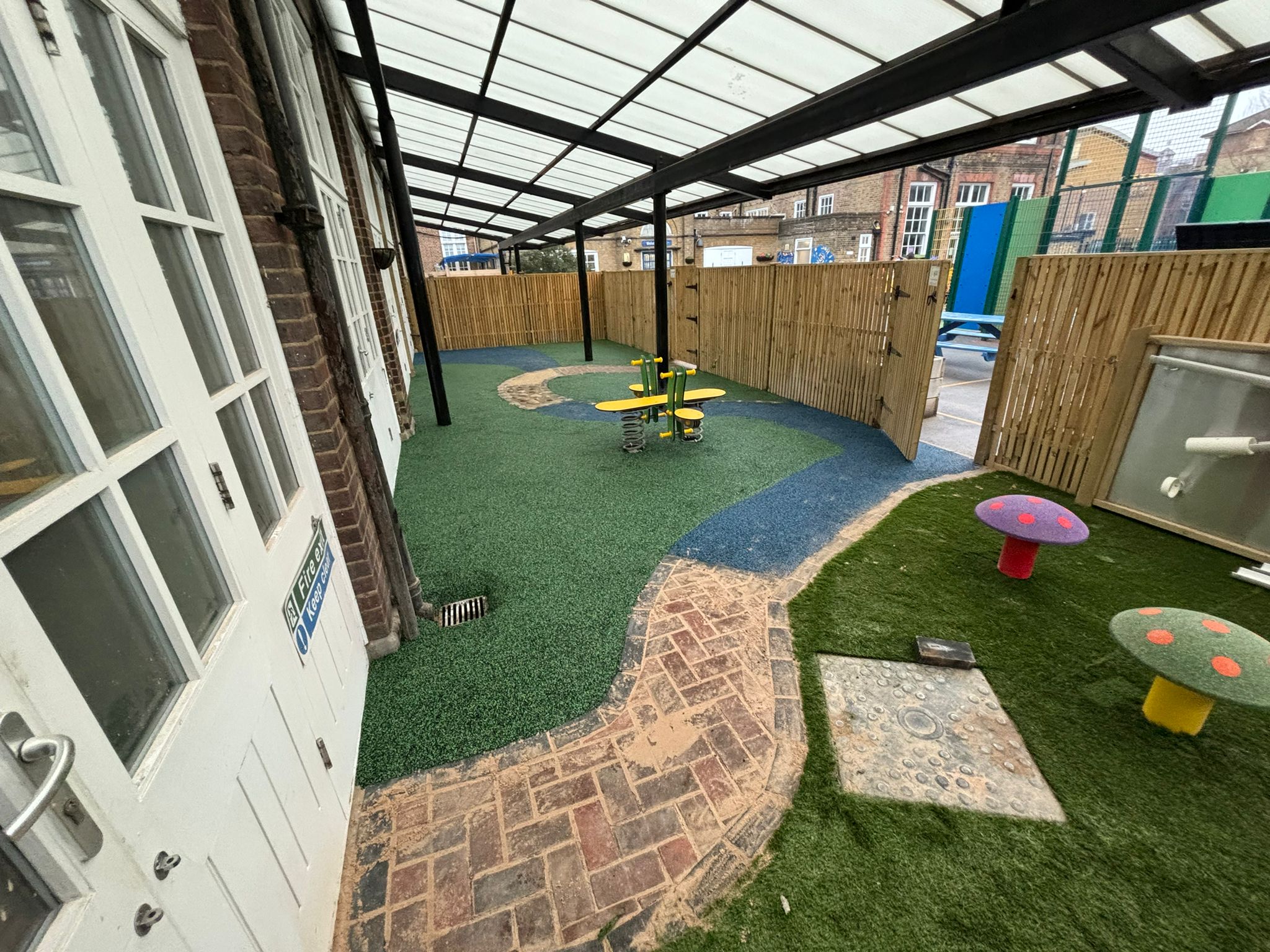 The completed space has had a notable impact. Staff reported increased levels of engagement during outdoor sessions, with children showing more willingness to explore the area and participate in sensory activities. The mix of movement and calm zones allows pupils to regulate at their own pace, while the clear layout supports transitions and structure, both vital for many children with additional needs.