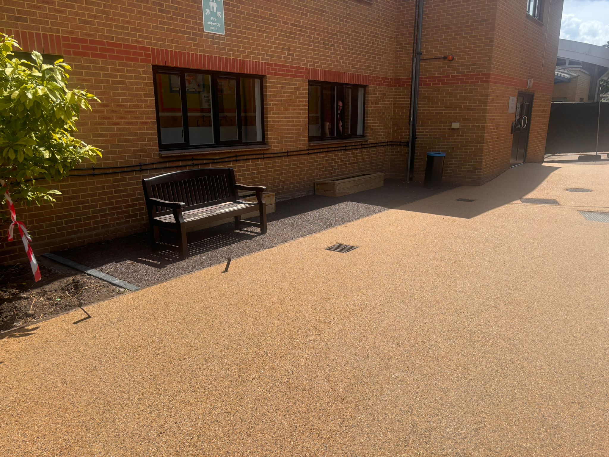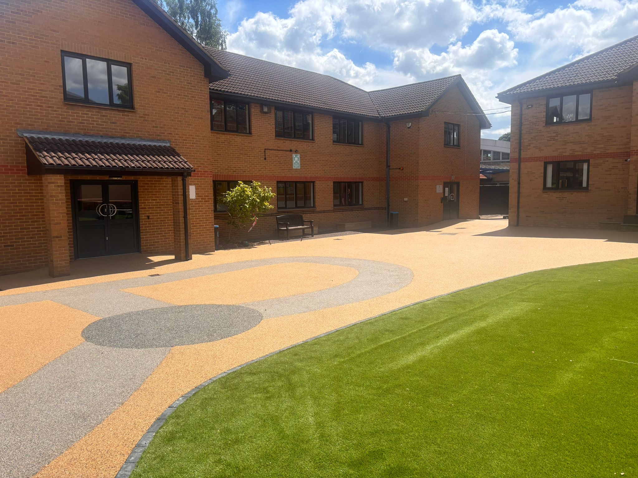 This one of our stunning playground case studies. The Mall School is an independent preparatory school and nursery for boys and girls, in Twickenham, London. Tracey, the school development officer, reached out to us with an interest in resurfacing the junior playground. The primary surface requirement was for resin bonded gravel, with the addition of some artificial grass to enhance the aesthetics.. Additionally, they wanted to refurbish part of the existing climbing frame.