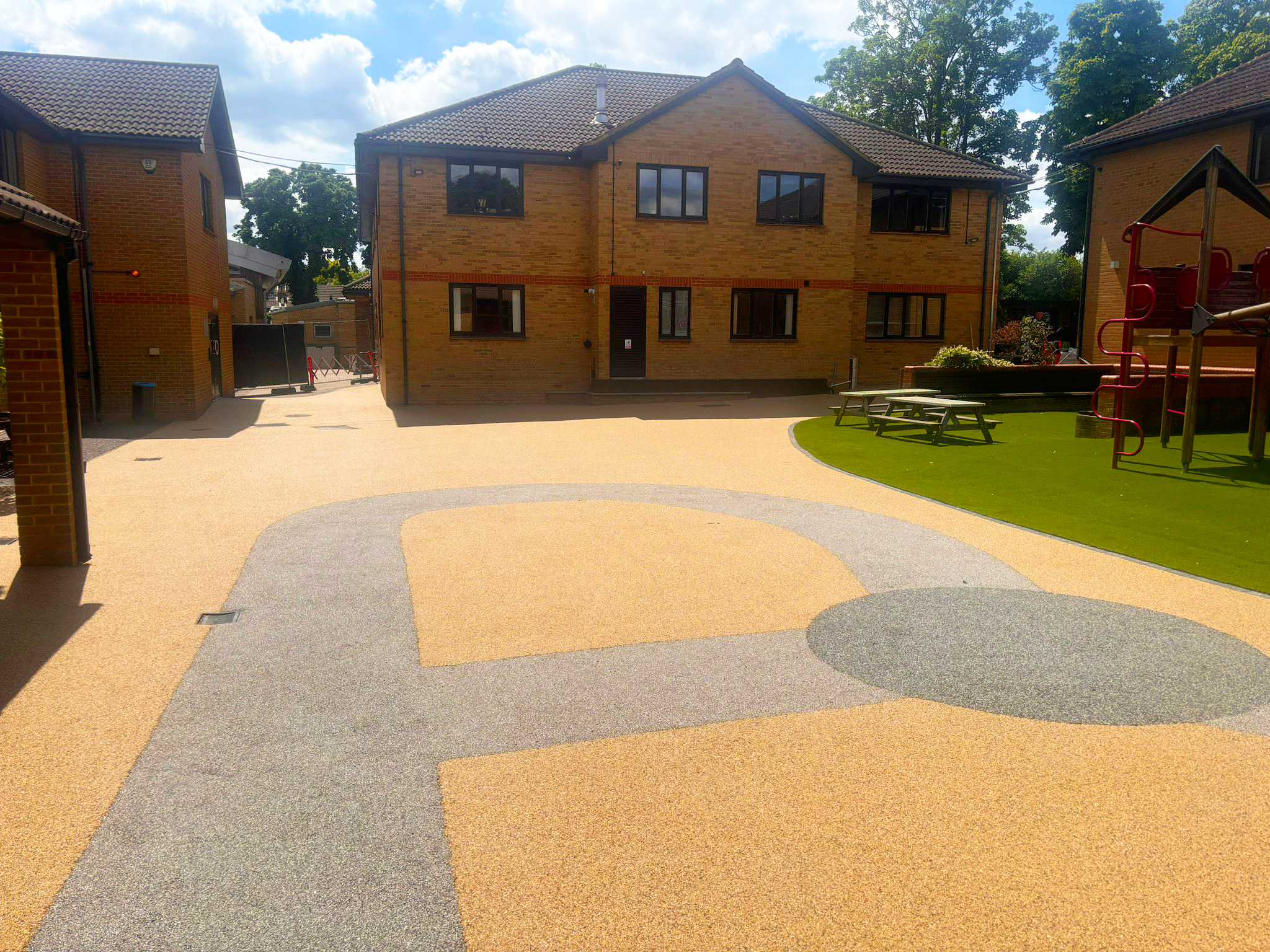 This amazing playground surfacing project completed at The Mall School in Twickenham showcases how resin bonded gravel can transform dull tarmac spaces.
