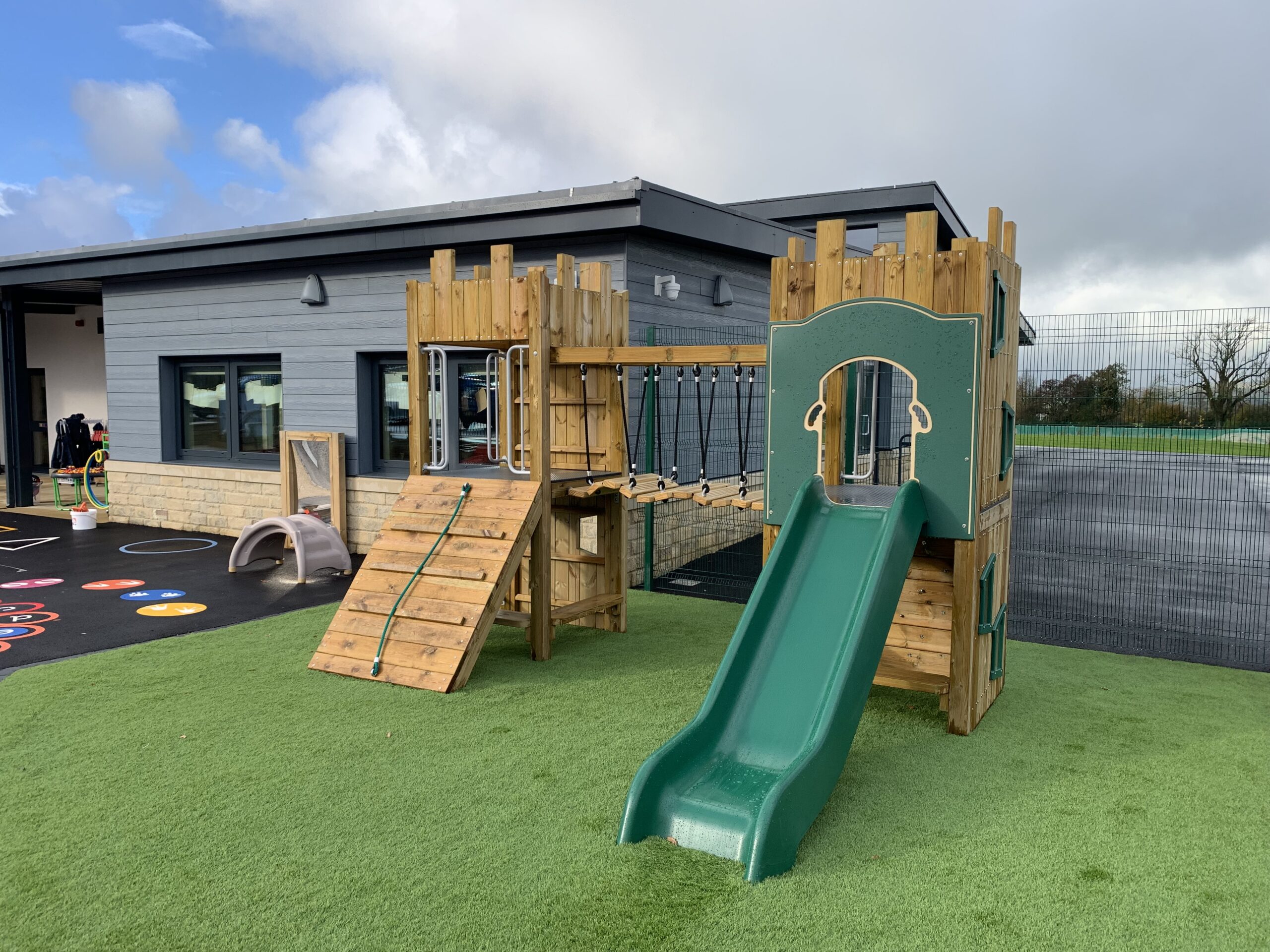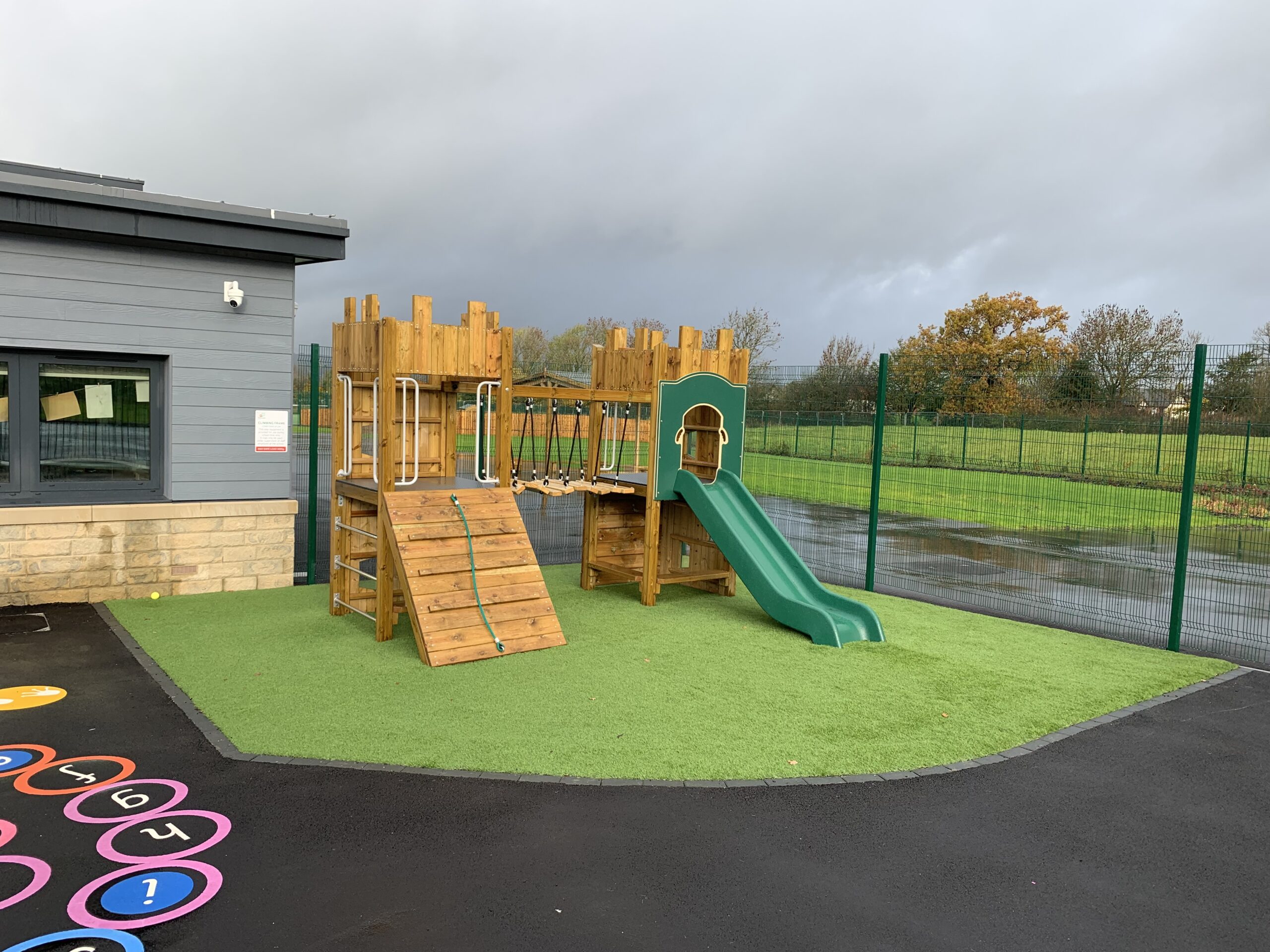 The new EYFS teachers, Jo and Rachel, envisioned a naturalistic space with diverse surfaces. They aimed to encompass the 7 areas of learning. We Incorporating features like a roadway, sandpit, mud kitchen, water wall, planters, mirror board, and educational markings. Eager to add climbing equipment, they were fond of our play towers, prompting us to design a custom one inspired by the nearby Clitheroe Castle.