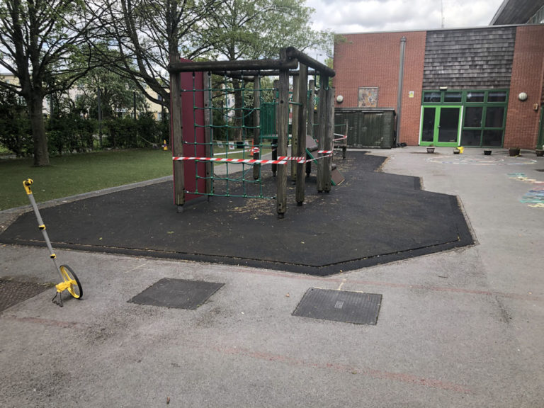 The school had an area of old climbing equipment in KS1 that had been condemned and needed removing. They wanted to replace the old equipment with similar items because they were popular among the children. The equipment needed to be suitable for children aged 5 to 7 years old and the budget was 10k. The existing wetpour surface had shrunk and lifted around the edges and also needed to be repaired.