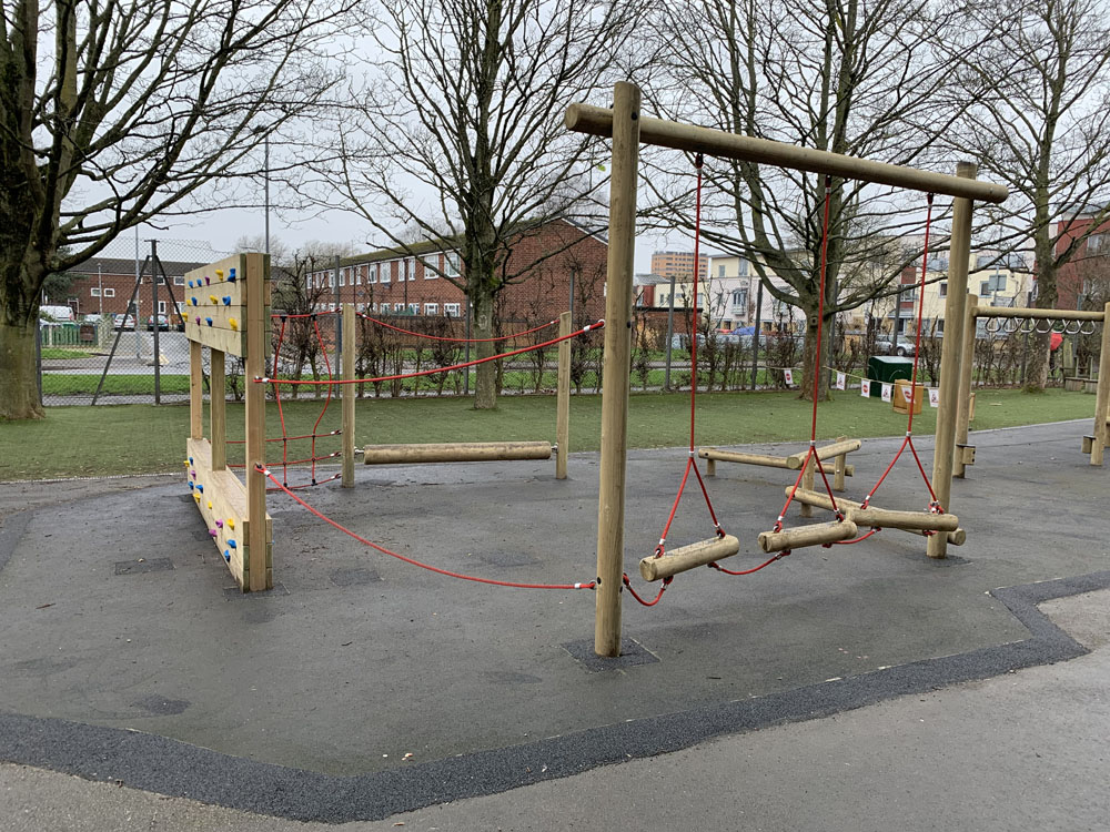 ESP Play created a design that included 8 different pieces of trim trail equipment that were suitable for the intended age range. It included cutting back and repairing the existing wetpour surface as well as removing and disposing of the existing equipment.
