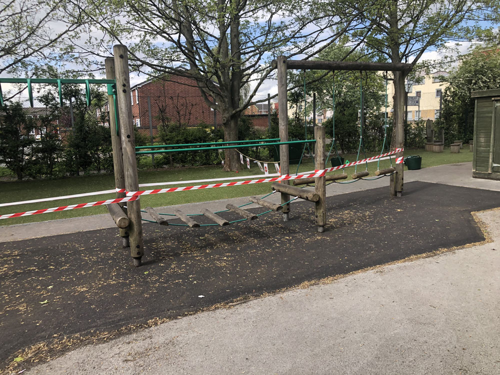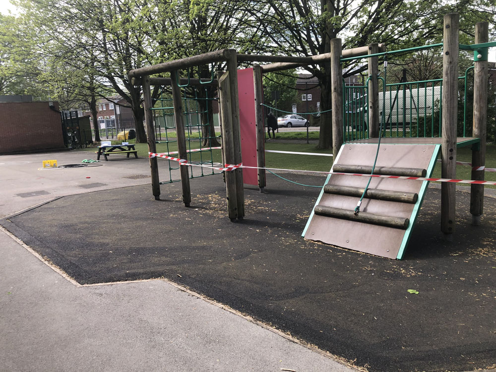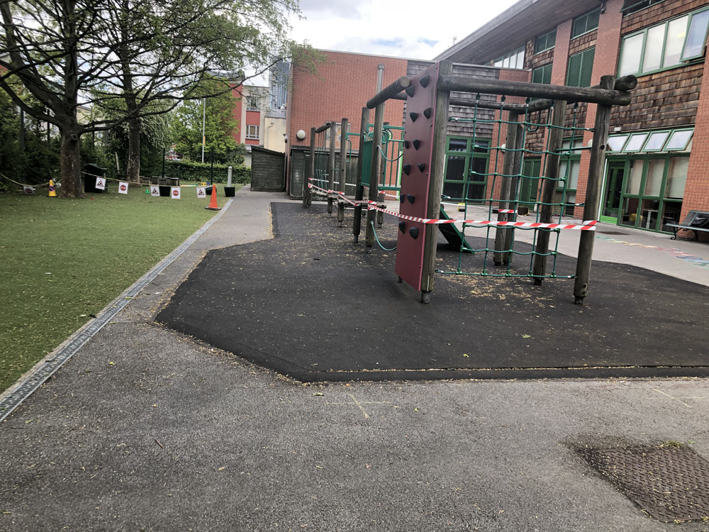 The school had an area of old climbing equipment in KS1 that had been condemned and needed removing. They wanted to replace the old equipment with similar items because they were popular among the children. The equipment needed to be suitable for children aged 5 to 7 years old and the budget was 10k. The existing wetpour surface had shrunk and lifted around the edges and also needed to be repaired.