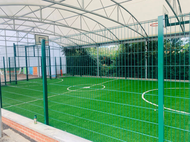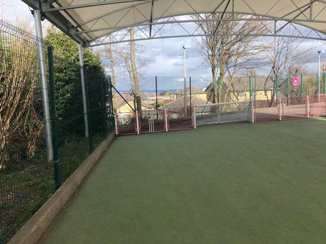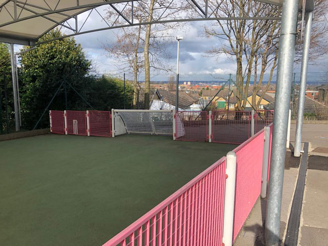 Following a full site assessment, ESP produced a design and specification to resolve the current issues and to provide a high quality facility that the children could access all year round no matter what the weather. The specification included a fit for purpose sub base and drainage system that was also used to level the ground. This ground work was contained within a cosmetically pleasing brick work arrangement. A sports match pad along with a new artificial sports turf was then laid with sports lines within. The area was enclosed with sports fencing which included two multi use steel goal ends catering for football and basketball.