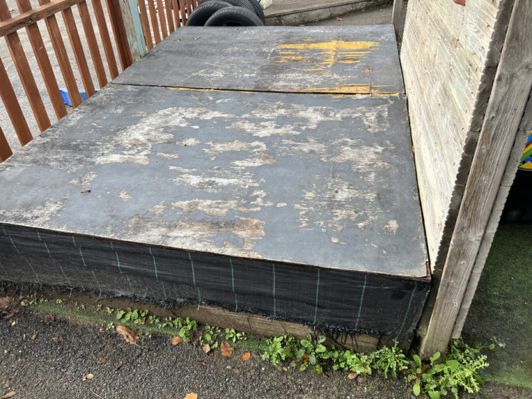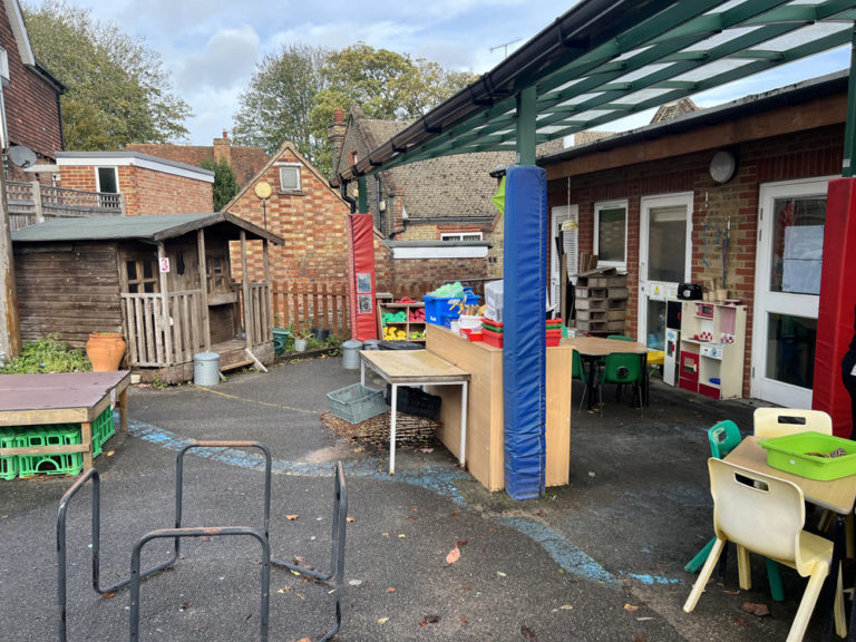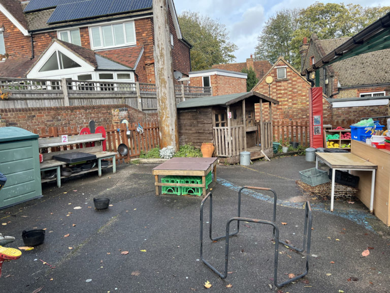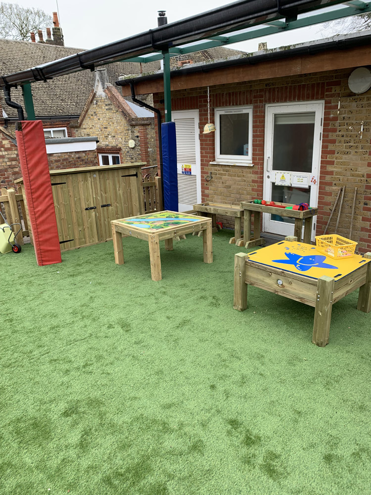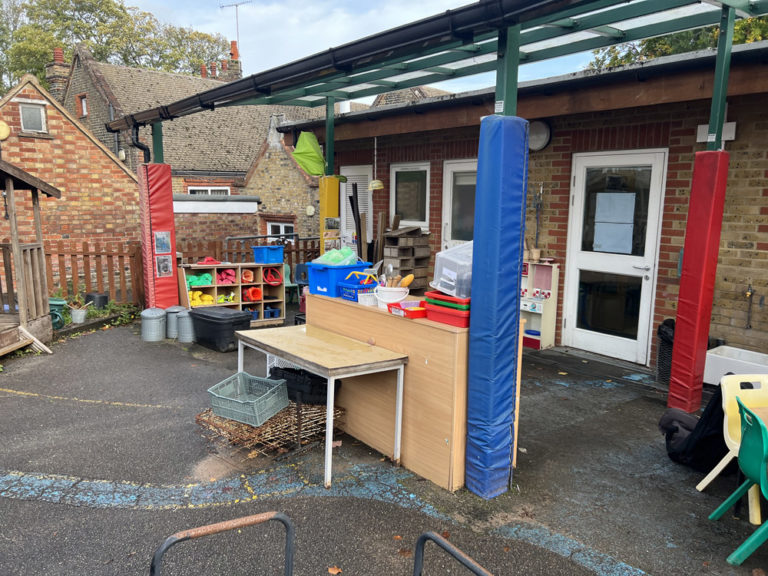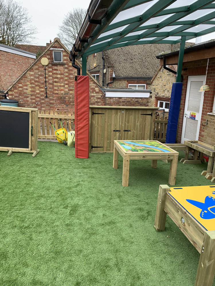 The schools existing EYFS area was dull and unorganised with lots of none fixed resources. They had a 30k budget which had a cut-off date to be spent. The area was quite small and lacked structure. The school were keen to resurface the area to create a natural feel incorporating chalkboards, storage, sandpit, playhuts, mud kitchen, messy tables, surfacing and water play.