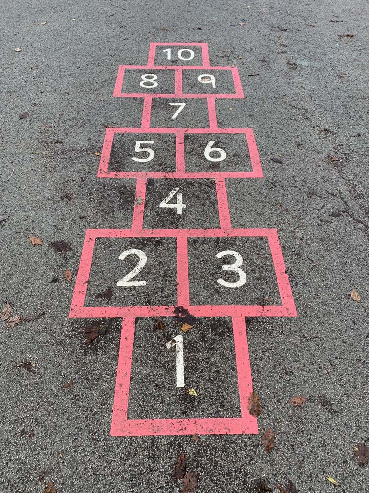 Upon a return visit in November, the Headteacher Luena said “What a difference the colour of the markings have made, they instantly lifted the drab tarmac. The children love the goalie target board in particular, I use the nine square grid during PE lessons and the blank number grid to teach maths. Rather than chalking the numbers in, I leave it blank and ask the children to find where the number would be which is far more challenging.” One of the lunchtime supervisors also said how much she enjoyed the CPD training.