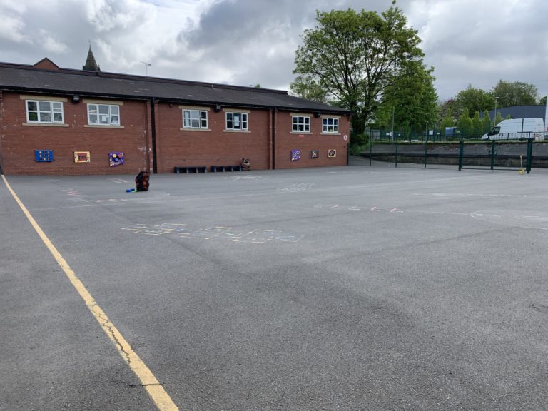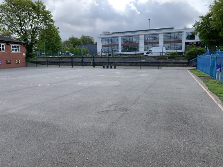 There was a double gate that parents used for access, this needed to kept free along with a pathway through the area. There was a section of fencing that the school wanted to remove to open up the space, as they knew this would be the ideal location for the sports area. They didn’t want any fixed goals or line markings because they wanted the area to be as flexible as possible.