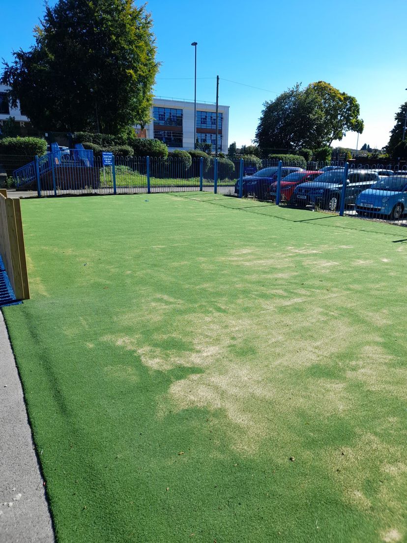 There was a double gate that parents used for access, this needed to kept free along with a pathway through the area. There was a section of fencing that the school wanted to remove to open up the space, as they knew this would be the ideal location for the sports area. They didn’t want any fixed goals or line markings because they wanted the area to be as flexible as possible.