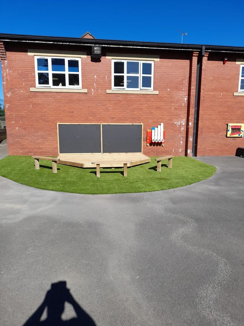The school really wanted the project to be completed over the summer holidays so we knew we had to work quickly to meet their deadline rushing the initial design and quote through for them. After receiving them, Deborah booked a second meeting with the consultant. They had put the design to the school council and wanted to make a couple of changes; they wanted to add in two ball catchers and a stage area where the children could perform. The representative suggested they could also include a chalkboard back drop and musical panels which they loved as these would enhance the area even further. They also swapped the large shelter for a smaller one and reduced the amount of picket fencing just to bring the costs back in line with the budget.