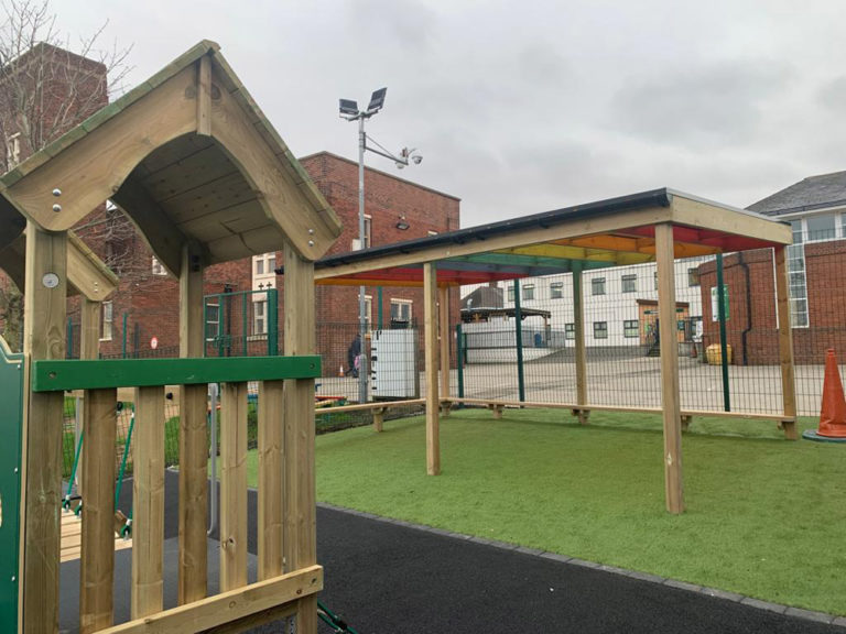 The school was looking to install a new roadway, a small climbing structure, and a playground canopy area to enable continuous provision and to allow the children to be out in all weathers. The school was very keen to get the playground project completed as soon as possible.
