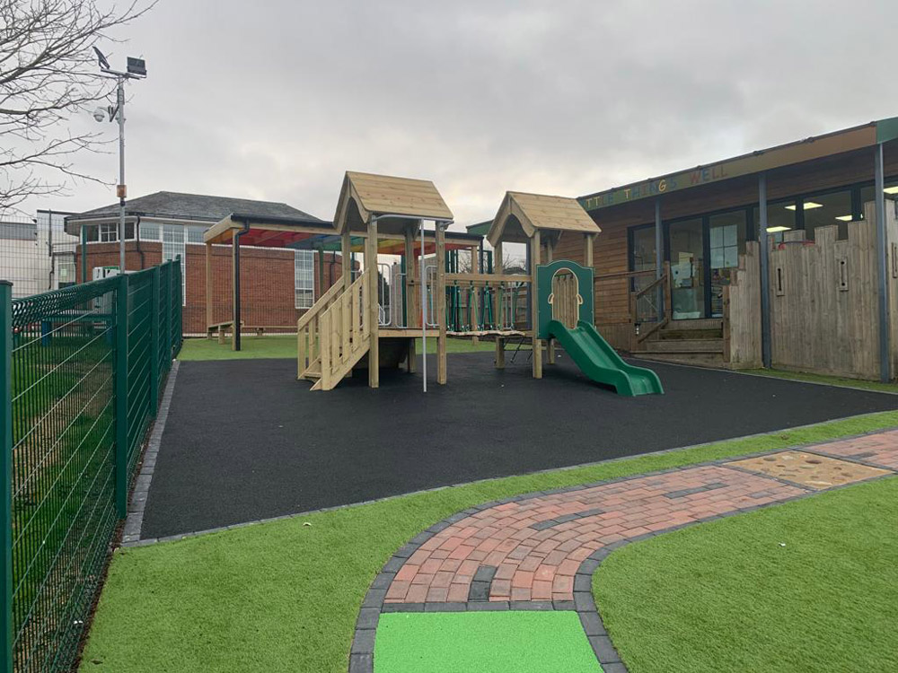 The school was looking to install a new roadway, a small climbing structure, and a playground canopy area to enable continuous provision and to allow the children to be out in all weathers. The school was very keen to get the playground project completed as soon as possible.