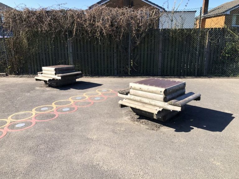 The project started with a free consultation at the school to discuss the requirement’s, take photos of the current space and carry out a survey of the area. ESP Play then created an initial design and quotation for the school ensuring it was within the 8k budget. We suggested they replace their current singled sided climbing wall with our double-sided traverse wall to allow more children to use it at one time. We replaced their existing goals with our recessed multi goal units that feature both football and basketball goals. The school already had our famous 5 Multi Skills markings, therefore we were able to utilise the existing nine square grid in the new daily mile activity marking to keep costs down for the school. The school ultimately decided to carry out the removals themselves so that they could spend more on the new equipment.