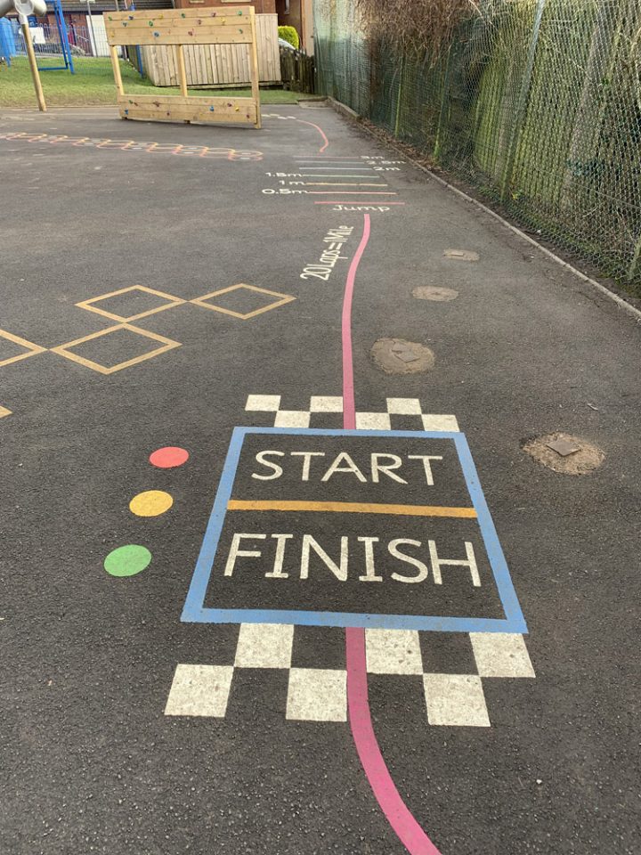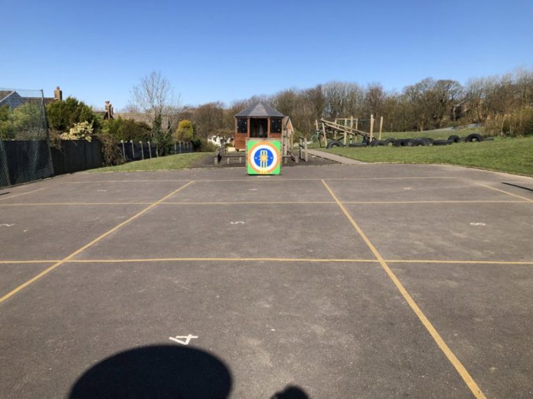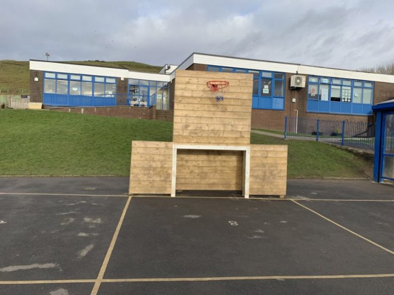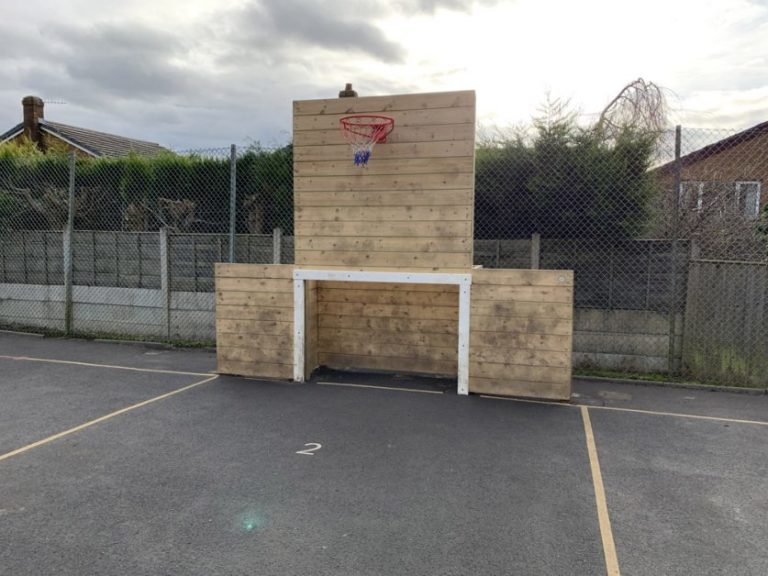 The school had a budget of 6-8k to make some small improvements to enhance the current area. They wanted to remove and replace the existing climbing wall and existing goals as well as removing their existing cricket boards because they no longer use them. The location of their existing ball catcher was creating an issue because it had been installed in the middle of the playground so they asked us to relocate it. Finally, they wanted to add to the existing markings and create an activity trail so that the children could do the daily mile.