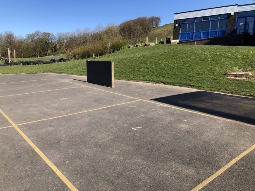 The school had a budget of 6-8k to make some small improvements to enhance the current area. They wanted to remove and replace the existing climbing wall and existing goals as well as removing their existing cricket boards because they no longer use them. The location of their existing ball catcher was creating an issue because it had been installed in the middle of the playground so they asked us to relocate it. Finally, they wanted to add to the existing markings and create an activity trail so that the children could do the daily mile.