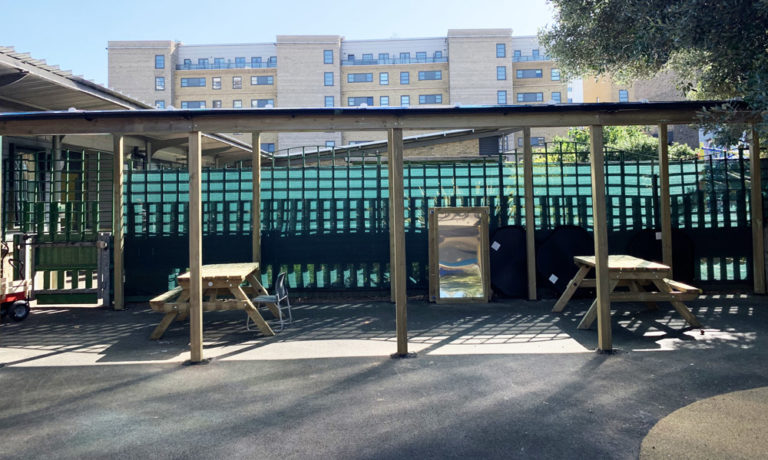 Stephen Hawking is a SEN school catering to those with severe, profound, and multiple disabilities. The existing playground was uneven, lacked free space and different surfacing levels made the area inaccessible to many of the children who are assisted with chairs, walkers or have visual impairments. ESP have transformed the area through new level surfaces and created a streamlined, simplistic area. New user-friendly equipment had huge focus on sensory stimulation, everything was purpose designed and manufactured to the unique needs of the school. These include nest swing, wheelchair accessible messy play stations, musical instruments, sensory play hut and a large, covered canopy with floral roof.