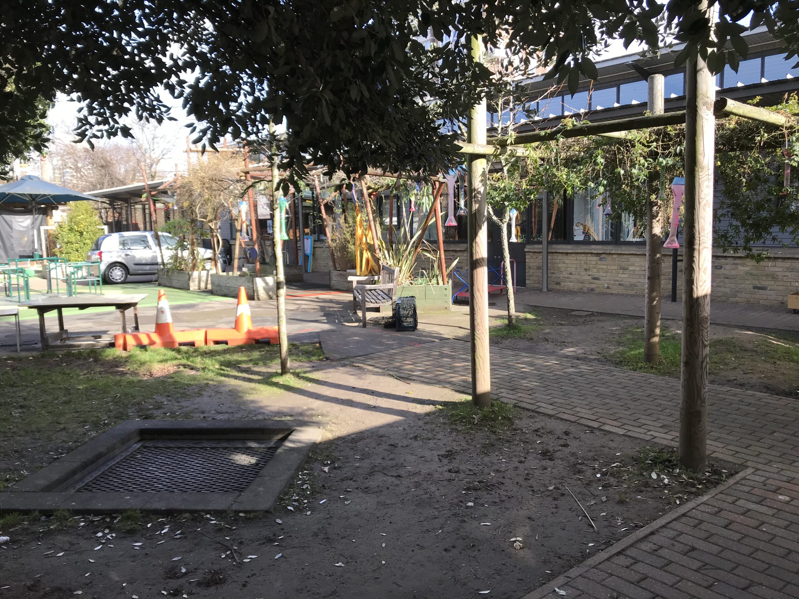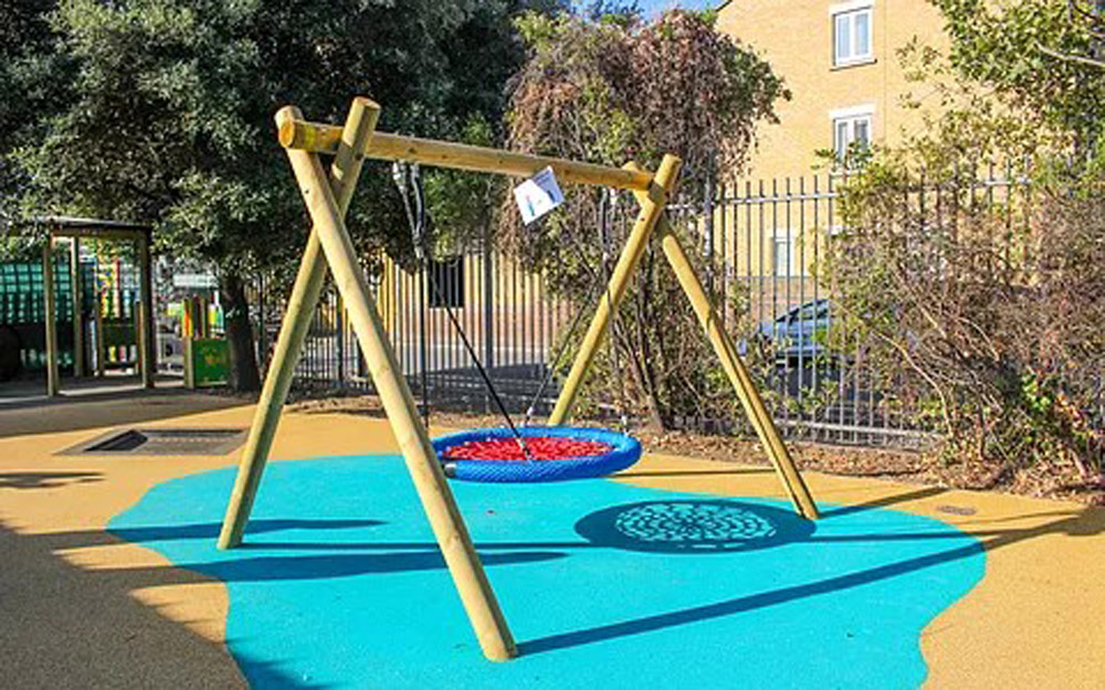 Stephen Hawking is a SEN school catering to those with severe, profound, and multiple disabilities. The existing playground was uneven, lacked free space and different surfacing levels made the area inaccessible to many of the children who are assisted with chairs, walkers or have visual impairments. ESP have transformed the area through new level surfaces and created a streamlined, simplistic area. New user-friendly equipment had huge focus on sensory stimulation, everything was purpose designed and manufactured to the unique needs of the school. These include nest swing, wheelchair accessible messy play stations, musical instruments, sensory play hut and a large, covered canopy with floral roof.