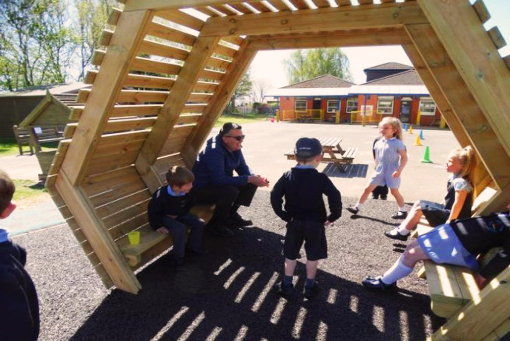 Stoke Prior First School approached ESP to redesign an area of their existing playground that was out of use due to safety reasons. They wanted a calming and reflective zone that could be used for learning as well as a breaktime space outside of the classroom.
