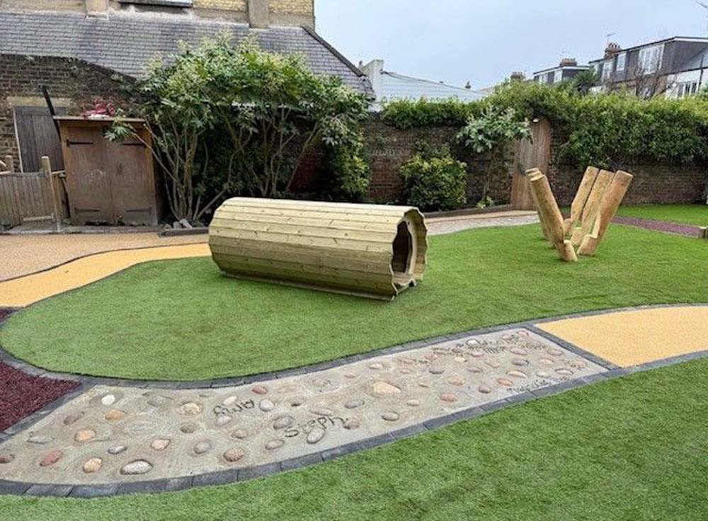 The team at ESP PLAY have transformed the play area by adding a play equipment such as a sensory roadway, which features our Wetpour ramp, our Wild Wood stilts and the Hollow Log in the centre. We have also included large chalk boards for mark making and our very popular Magnetic Waterwall.