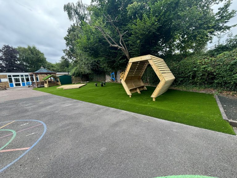 Thorley Hill Primary School approached us with a clear vision: to create a calm, inclusive outdoor space where children could relax, connect, and express themselves. Rather than prioritising climbing equipment, the school wanted a quieter, more thoughtful environment, a place where children could sit, chat and reflect.