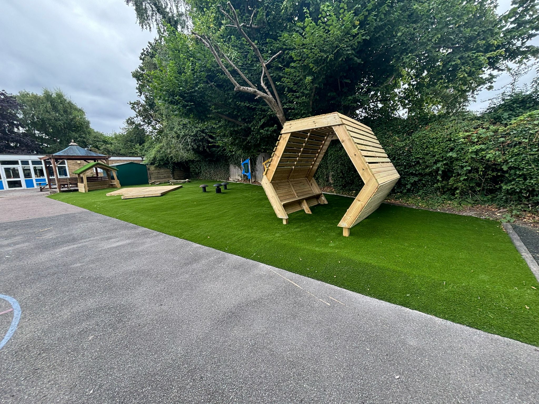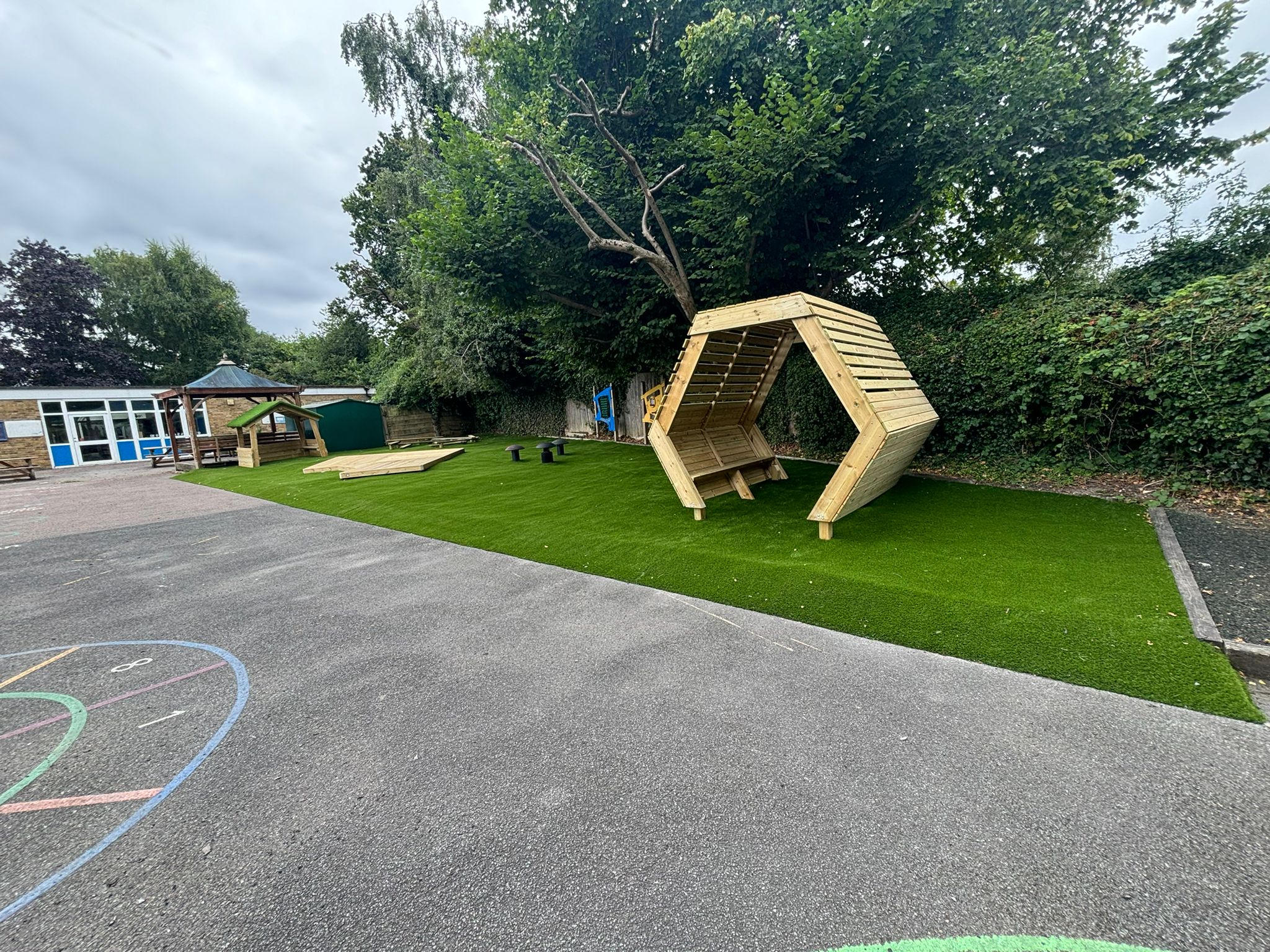 The finished project reflects the school’s values beautifully. It’s a space designed not for spectacle, but for comfort, creativity, and community. The children now have an outdoor area that supports their emotional wellbeing, encourages friendships and gives them freedom to express themselves without the need for large play structures.
