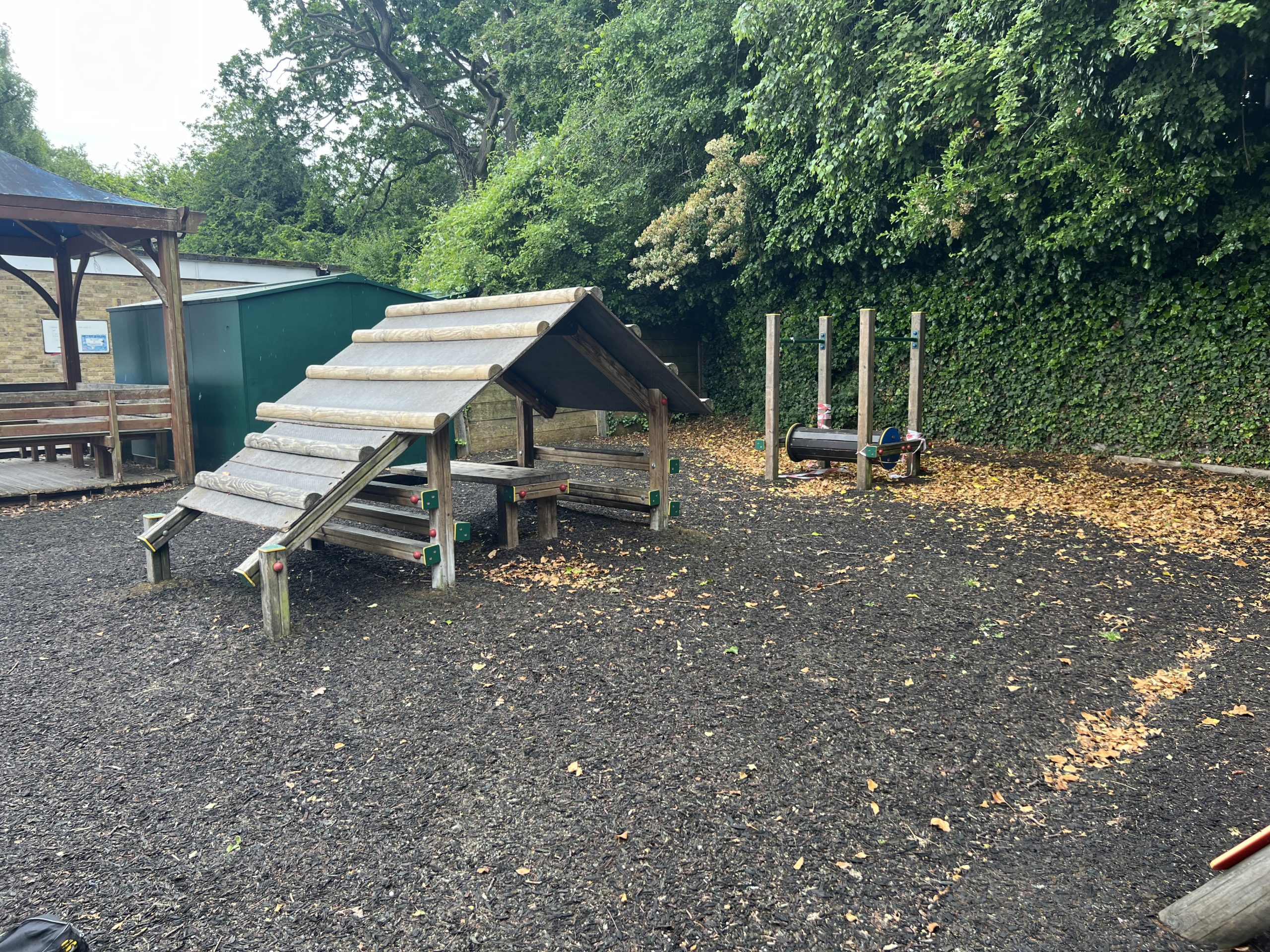 “In an ideal world, remove the edging, resurface with AG, and replace equipment. A quiet area where children can sit, chat and just ‘be’. A stage would be lovely. The train is well used by children to sit and talk and the hut is a favourite. Climbing equipment isn’t essential.”