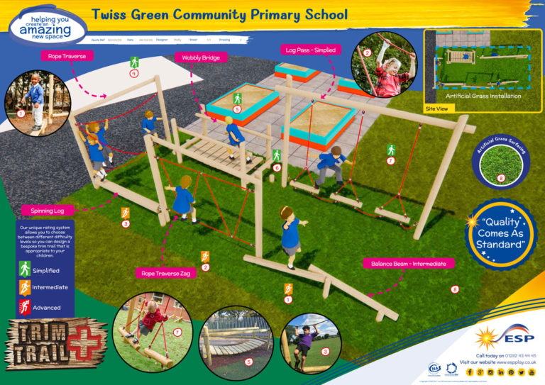 The project began with a meeting at the school to discuss their specific needs, this was followed by a couple of design options, each one showcasing the different trim trail items available for the school to pick and choose from. Initially the school was going to carry out their own removals, however, after getting a quotation for the work, they decided to use ESP Play for those too. Once the design was finalised, the installation date was scheduled. The team installed the intermediate balance beam, rope traverse zag, spinning log, rope traverse, wobbly bridge, log steps and the log pass along with artificial grass surfacing. The entire project was carried out for only £12,000.