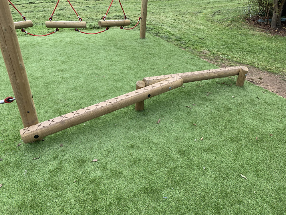 The project began with a meeting at the school to discuss their specific needs, this was followed by a couple of design options, each one showcasing the different trim trail items available for the school to pick and choose from. Initially the school was going to carry out their own removals, however, after getting a quotation for the work, they decided to use ESP Play for those too. Once the design was finalised, the installation date was scheduled. The team installed the intermediate balance beam, rope traverse zag, spinning log, rope traverse, wobbly bridge, log steps and the log pass along with artificial grass surfacing. The entire project was carried out for only £12,000.