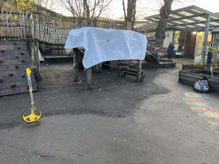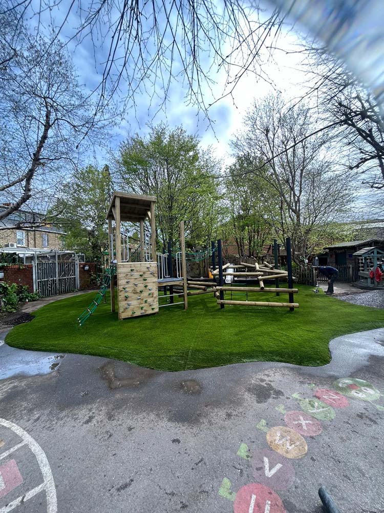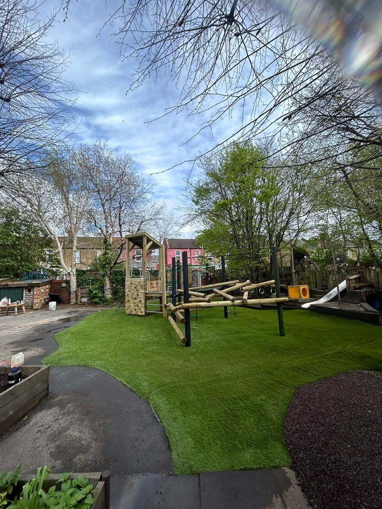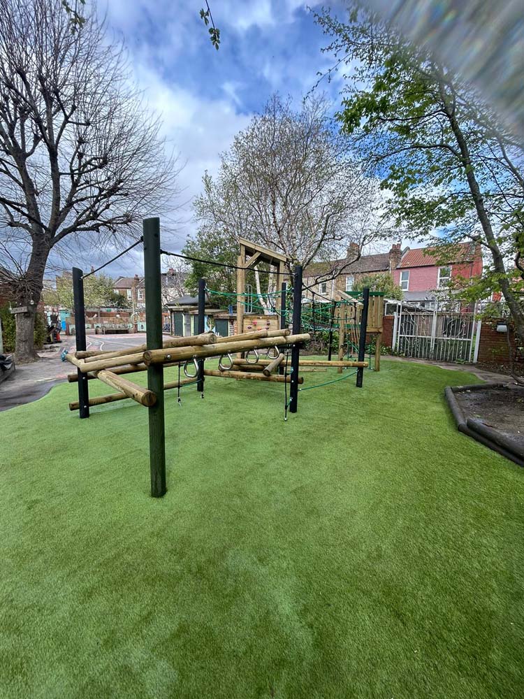 In 2023, we were contacted by the Headteacher Sian as they now had funds for the project. Following a free consultation at the school, we created a bespoke climbing frame. Sian wanted to extend the area to cover part of a sensory path and soften all the existing edges.