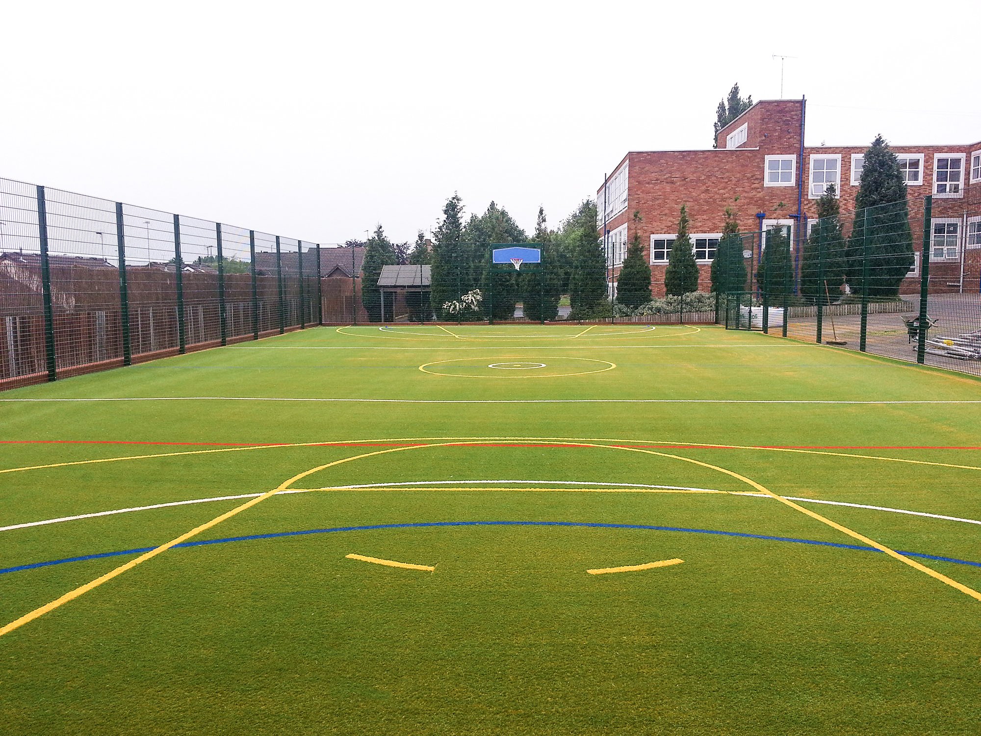 For those schools that are seriously short of space, the ultimate solution can be found in our multicourt markings. A multicourt consists of futsal, netball and basketball markings overlaid on a single court. The markings for each sport are in a different colour, making it easy for pupils to identify the right ones. This gives schools the ability to utilise the same space for three separate sports.
